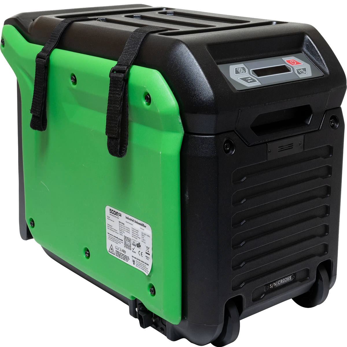 This Ecor Pro industrial LGR dehumidifier has an impressive control panel which can be used to set desired relative humidity, and much more.