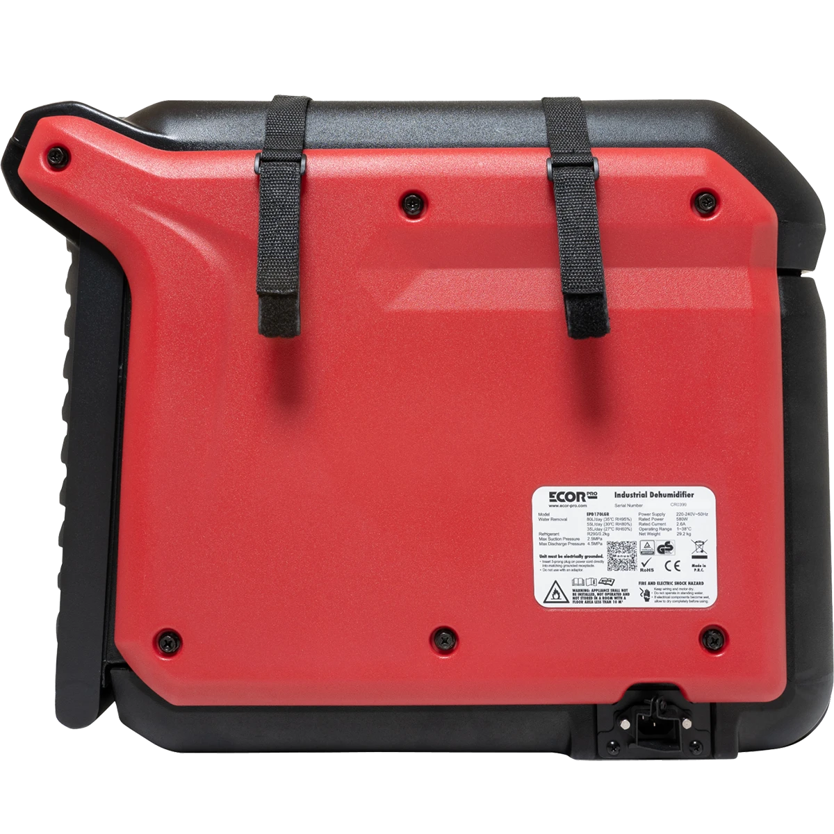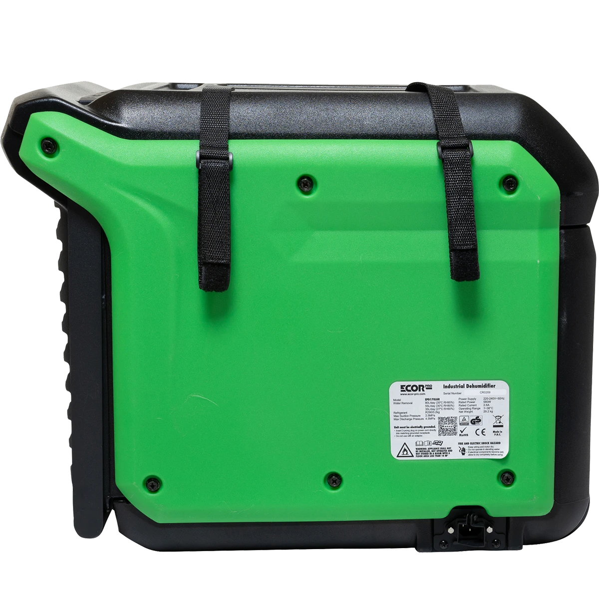 The Ecor Pro EPD170 LGR Industrial Dehumidifier is a work-horse for tough work-sites including water damage restoration jobs and construction sites. Features internal condensate pump with 40-foot line, digital controls with job logging, air filter, and extended 25-foot power cord.